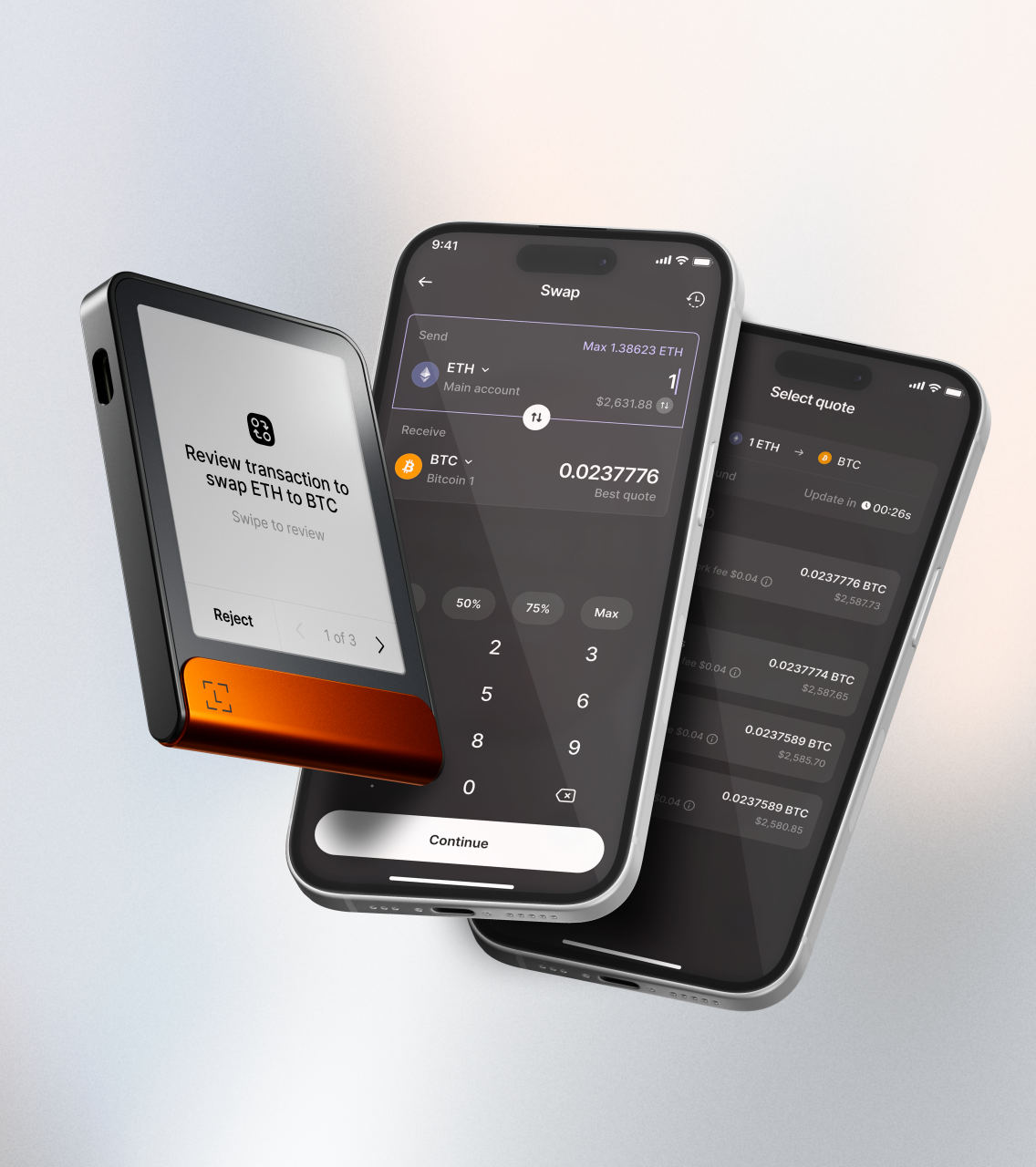 直接将一种加密货币兑换成另一种加密货币。比较不同服务提供商。使用安全的 Ledger 悦签宝安全地检查并批准每笔交易。